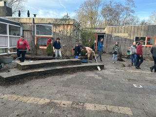 Deze week een treffende spreuk met haar beschrijving van de winter, waarin we de wereld met de kracht en warmte uit ons eigen hart kunnen laten schijnen. Die energie was vorige week zaterdag al goed te voelen, toen er maar liefst negen ouders, hun kinderen, Elske-Fleur en ikzelf -met hulp van mijn handige echtgenoot- de handen uit de mouwen hebben gestoken. Onder een stralende winterzon zijn beide pleinen van jonge boompjes voorzien en het bestaande groen gesnoeid. Het was een ouderwets gezellige ochtend, waar ook ruim de tijd is genomen voor het koffie-, thee-, appeltaartmoment. In de dagen daarna heeft een tuinbedrijfje de boompjes voorzien van steunpalen en het plein weer bedekt met verse houtsnippers. Klas 5 zal in het kader van de plantkundeperiode zorg dragen voor het water geven, zodat de boel vanaf nu lekker kan gaan groeien en het plein verder zal vergroenen.