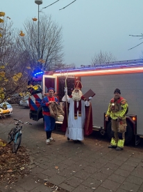 Niet eerder hadden we meegemaakt dat ons inmiddels vertrouwde Sint-en-Piet-duo per brandweerauto werd afgeleverd. Het was in elk geval een bijzondere gebeurtenis en in alle klassen zat de hele ochtend de sfeer er goed in: van rustig en ingetogen bij de kleuters, opgetogen verwondering over de cadeaus bij de klassen 1-2-3 tot aan inventieve surprises in de hoogste klassen. Wat is er van alle kanten -en niet in de minste plaats door de ouders- weer enorm veel passie en energie in gestoken.