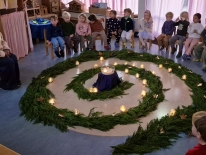 Vandaag ging de tweede adventsweek op school van start. Klas 6 zong in de grote zaal terwijl de klassen 1 tot en met 5 ‘s morgens vanaf het plein in stilte naar hun klas liepen. Na de ochtendspreuk kwamen de klassen terug naar de zaal om samen te zingen en naar een verhaal te luisteren. Ook in de kleuterbouw werd de dag in adventssfeer opgestart met lichtjes en samenzang.