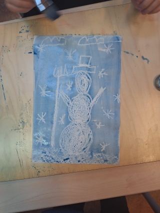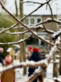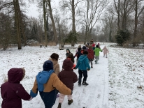 Wat een welkom cadeautje was de sneeuw in de eerste schoolweek van het nieuwe jaar, ook geheel passend in mijn verhalen tijdens het periodeonderwijs Heemkunde. In elk van de vier de seizoenen worden aan de hand van de avonturen van Goudelsje, de kenmerken van dat seizoen verteld, beleefd en verwerkt. Nu konden de verhalen van Goudelsje in de winter écht worden beleefd door de kinderen. "Hoe voelt sneeuw?" "Hoe kan het dat mijn handen nog steeds warm aanvoelen als ik een sneeuwpop aan het maken ben?" en "Waarom worden de wolken steeds donkerder als het gaat sneeuwen?" Dit soort vragen stelt Goudelsje aan haar ouders en bespreek ik met de kinderen. Nu konden de kinderen alles waarnemen en ervaren. We hebben veel plezier beleefd in de sneeuw, ook samen met klas 2 en 3 in het park.